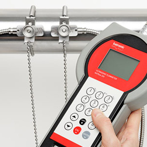 KATflow200 is a lightweight easy to use portable battery powered ultrasonic flowmeter in a robust housing. This meter can be operated one-handed making it ideal for use in those difficult to get to locations, typical applications include checking flow rates in pipes where a flowmeter is not fitted, checking the performance of existing in-line flowmeters, pump testing etc.